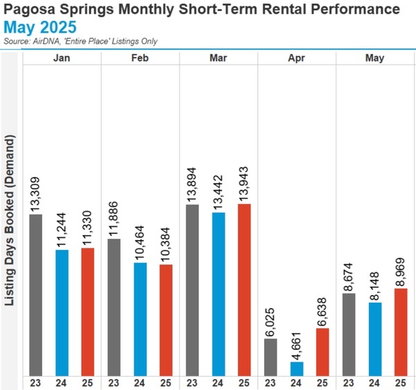 If you look at the performance of the Pagosa STR sector during April and May, shown below — the same months when the Lodgers Association claimed their bookings were “down 22-25%” — we see Days Booked that exceeded both 2023 and 2024.