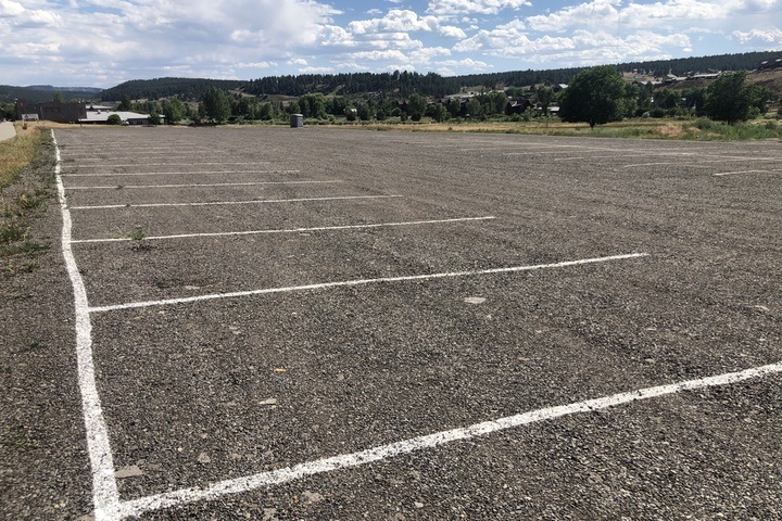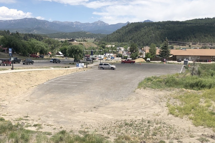 Here are the two new temporary parking lots developed by the Town of Pagosa Springs… “Free Parking” created to make up for the downtown parking spots eliminated by the CDOT highway project. Photographed on the afternoon on June 6… normally, the height of the tourist season.