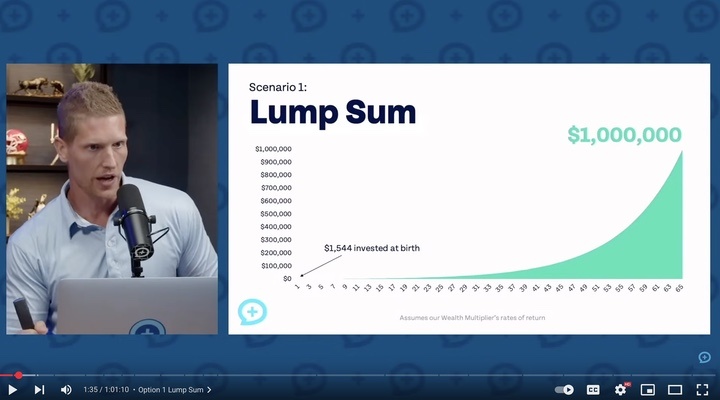 So simple. Invest $1,544 on the day your new baby is born, and never add another penny… and when your baby reaches age 65 and is no longer a baby, they will have $1 million in their retirement account, courtesy of the wonderful thing known as ‘compound interest’.