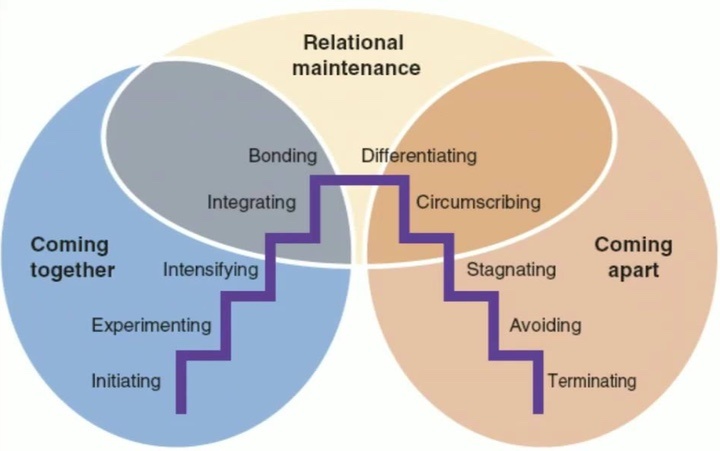 First you climb the stairs to reach the stage of “Relational maintenance” which is similar to “Car maintenance” but slightly different. The first step is called, innocently enough, “Initiating”.