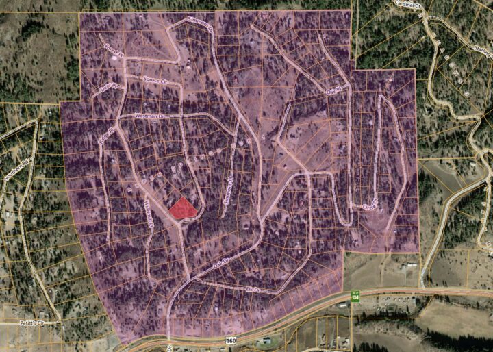 This map shows Unit 1 tinted pink, and 38 Spruce Circle tinted red. US Highway 160 runs across the bottom of the map. Click to enlarge the map.