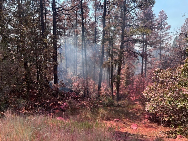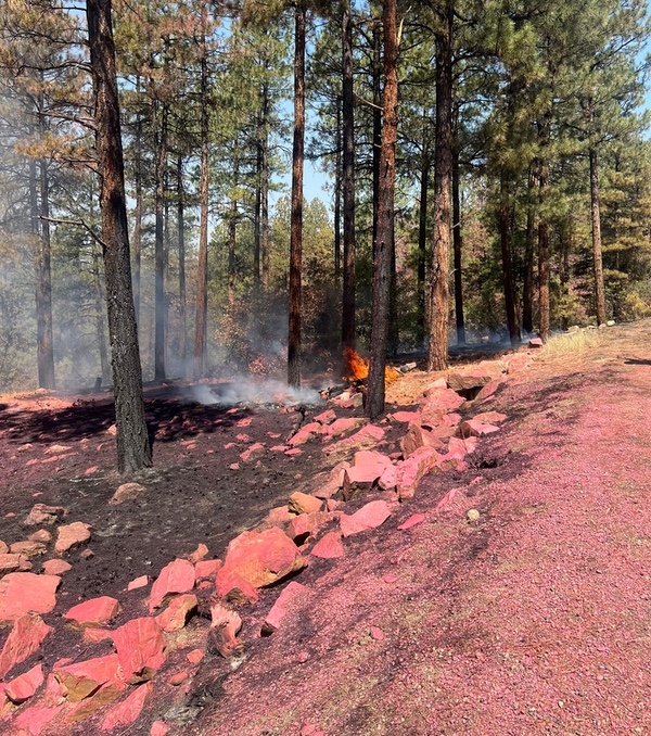 I assume the “pinkish” tones in the shared photos reflect the large amounts of fire retardant dropped by aircraft.