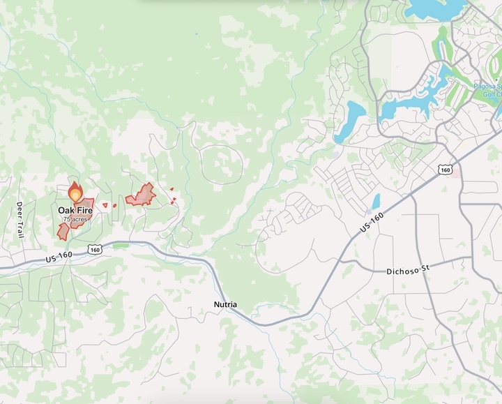 The newest wildfire — the Oak fire — sparked on Sunday afternoon in Pagosa Springs and resulted in mandatory evacuations in two subdivisions and was about 75 acres, according to the Colorado Division of Fire Prevention and Control.