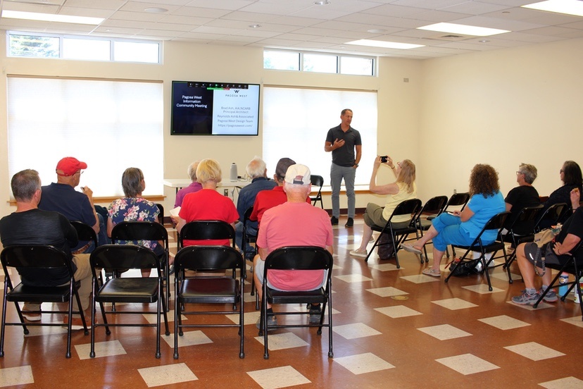 Photo: ‘Pagosa West’ public presentation at the Community Center, hosted by architect Brad Ash and the Pagosa Springs Community Development Corporation, August 19, 2025.