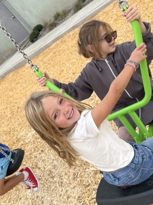 Students balanced on the Cliff Rider, raced down the side-by-side slides, pushed each other on the swings and dug in the sandpit.