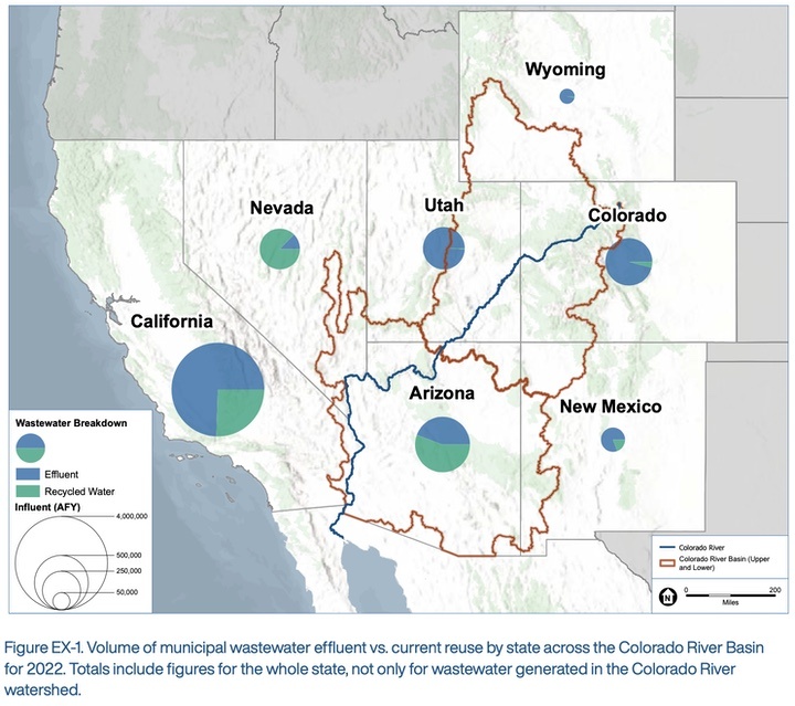 This map indicates that Arizona now recycles more than half its wastewater, and Nevada recycles nearly all its wastewater.