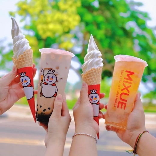 The outlet is more commonly known as “Mixue Ice Cream & Tea”. From what I can tell from the Mixue images I found online, the shops everywhere in the world usually spell out “Ice Cream & Tea” on their signage in English, accompanied by the phrase “Since 1997”.
