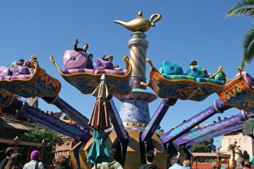 It turns out that Disney’s Magic Kingdom has a ‘magic carpet ride’ — a dozen cast-fiberglass carpets that go around and around in a circle, bobbing slowly up and down like a real flying carpet. I assume it feels a lot like a real flying carpet would feel.