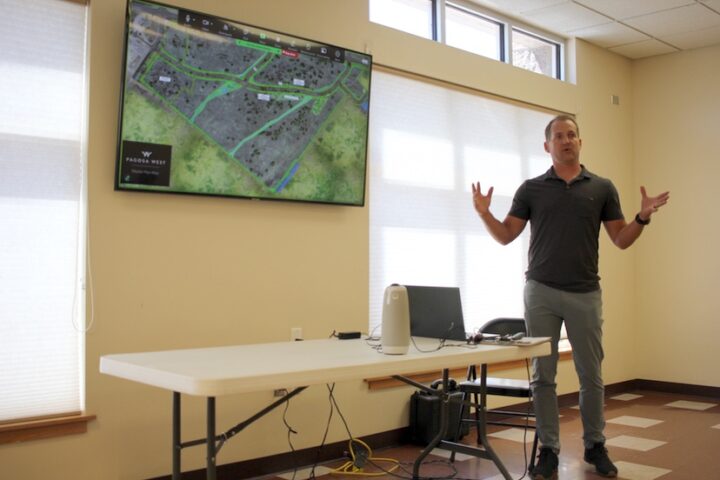 Architect Brad Ash presents a map with very little information at a August 21, 2025 public meeting at the Ross Aragon Community Center.