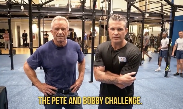 Pete didn’t quite meet the challenge; it took him 5 minutes and 25 seconds. Secretary Kennedy was “right behind me.” (The actual “Pete and Bobby Challenge” website allows 10 minutes to complete these two tasks.)